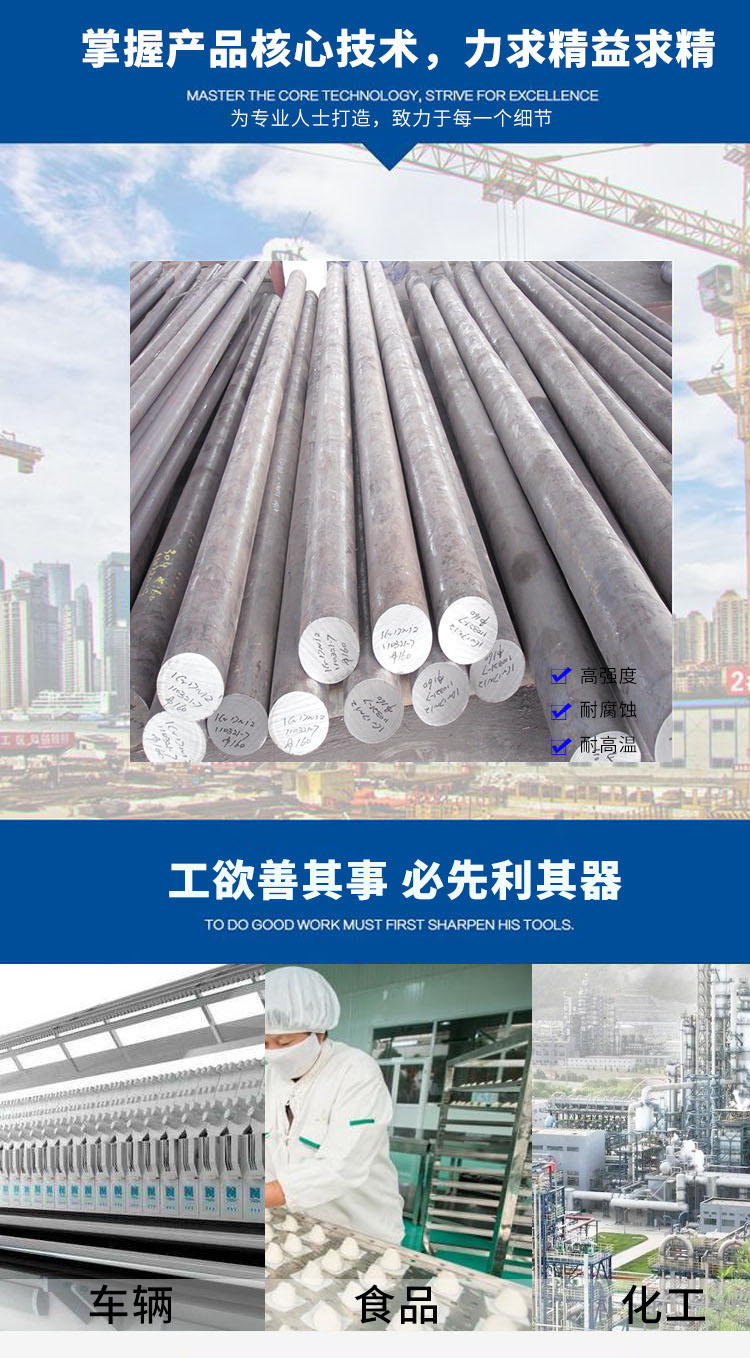 316不銹鋼棒應(yīng)用前景廣闊,被廣泛用于五金廚具、造船、石化、機(jī)械、醫(yī)藥、食品、電力、能源、建筑裝潢、核電、航空航天、軍工等行業(yè)!。海水里用設(shè)備、化學(xué)、染料、造紙、草酸、肥料等生產(chǎn)設(shè)備;食品工業(yè)、沿海地區(qū)設(shè)施、繩索、CD桿、螺栓、螺母。316不銹鋼棒按生產(chǎn)工藝分可分為熱軋、鍛制和冷拉三種。熱軋不銹鋼圓鋼的規(guī)格為5.5-250毫米。其中:5.5-25毫米的小不銹鋼圓鋼大多以直條成捆供應(yīng),常用作鋼筋、螺栓及各種機(jī)械零件;大于25毫米的不銹鋼圓鋼,主要用于制造機(jī)械零件或作無縫鋼管坯。316不銹鋼棒分為316L不銹鋼圓棒,904L不銹鋼方棒,904L不銹鋼光亮棒904L 國內(nèi)牌號(hào)00Cr20Ni25Mo4.5Cu.隨用途而異。C含量<=0.02%或0.03%.具有較高的鉻含量和足夠的鎳含量,銅的加入使它具有很強(qiáng)的抗酸能力,尤其對(duì)氯化物間隙腐蝕和應(yīng)力腐蝕崩裂有高度抗性