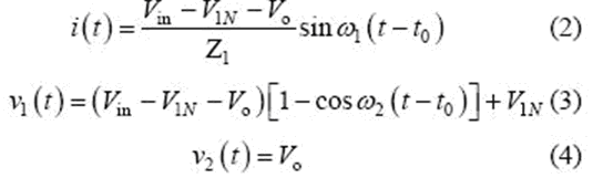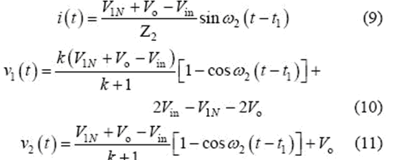 當(dāng)v2(t2)= -Vo 時,該模式結(jié)束,可得到如下表達式
