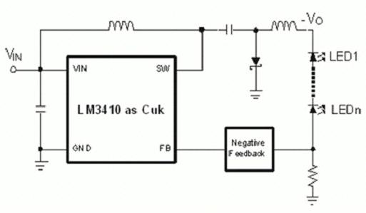 另外,Boost調(diào)節(jié)器不允許輸出電壓下降到輸入電壓以下。這個(gè)條件需要一個(gè)輸入端短電路并且使利用一個(gè)并聯(lián)FET實(shí)現(xiàn)調(diào)光變得不可能。。在Buck-Boost拓?fù)渲?,并?lián)FET調(diào)光仍然不可能或者不切實(shí)際,這是因?yàn)樗枰粋€(gè)輸出電容(SEPIC,Buck-Boost和flyback),或者輸出短電路(Cuk和zeta)中的未受控制得輸入電感電流。當(dāng)需要真正快速PWM調(diào)光的時(shí)候,最好的解決方案是一個(gè)二級(jí)系統(tǒng),它利用一個(gè)Buck調(diào)節(jié)器作為第二LED驅(qū)動(dòng)級(jí)。如果空間和成本不允許的時(shí)候,下一個(gè)最好的原則就是一個(gè)串聯(lián)開關(guān)(圖4)。