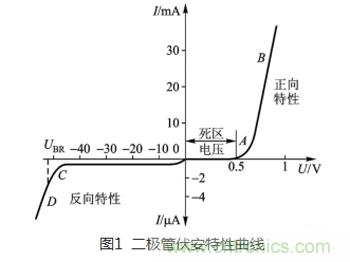 提到二極管,大家最熟悉的就是二極管的單向?qū)щ娦?,反映伏安曲線上如圖1所示。當(dāng)正向偏壓U=0.5V(硅管)時(shí),二極管開(kāi)始導(dǎo)通,電流越大電壓越大,具有很低阻抗;當(dāng)加反向偏壓時(shí)二極管不導(dǎo)通,在一定范圍內(nèi)有很小的漏電流,具有很大阻抗。其這個(gè)單向?qū)щ娦?,也起到了開(kāi)關(guān)的作用,所以在整流和開(kāi)關(guān)方面都有廣泛的應(yīng)用。