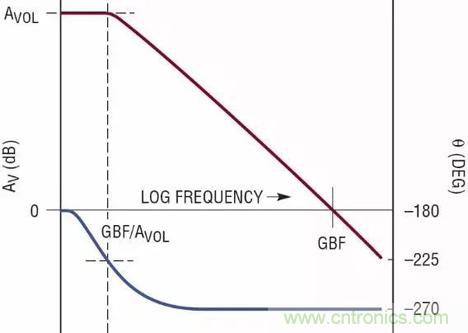 圖1c:理想化的運(yùn)算放大器頻率響應(yīng)