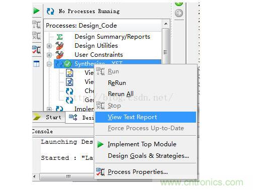 為了區(qū)別兩種設(shè)計的不同,可以查看ISE提供的綜合報告,操作如下: