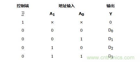 由表2可知,具有兩位地址輸入A0、A1的4選1數(shù)據(jù)選擇器,當(dāng)使能控制端=0時,輸出與輸入之間的邏輯關(guān)系式為