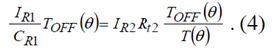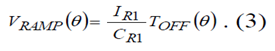 在功率開(kāi)關(guān)管關(guān)斷期間,CR1電容的充電電流是IR1恒流,CR1電容上的電壓VRAMP (θ)線性升高: