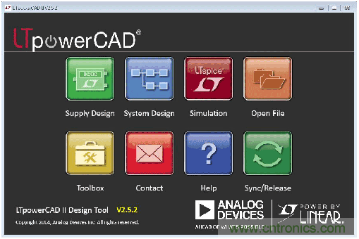 LTpowerCAD可用來為各個電壓軌提供電源解決方案。它還提供一系列參考設計,以讓設計人員快速入門。LTpowerCAD可以從ADI公司網(wǎng)站免費下載。
