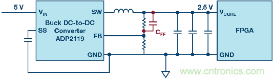 圖6. 當沒有環(huán)路補償引腳可用時,利用前饋電容可以調(diào)節(jié)控制環(huán)路。