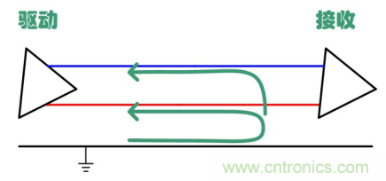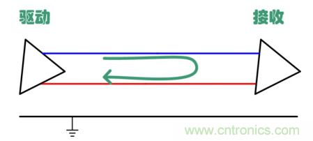 先介紹共模干擾,圖 1、圖 2分別給出了差模和共模干擾及其傳輸路徑。圖中的驅動器及接收器為差分信號傳輸,類似CAN總線。差模干擾產(chǎn)生于兩條傳輸線之間,共模干擾則在兩條線中同時產(chǎn)生,其電勢是以地為參考。