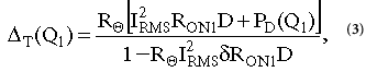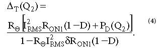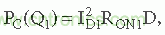 其中I D是漏極電流,R ON是制造商規(guī)定的標(biāo)稱(chēng)環(huán)境溫度下的溝道電阻,D是Q 1的占空比。