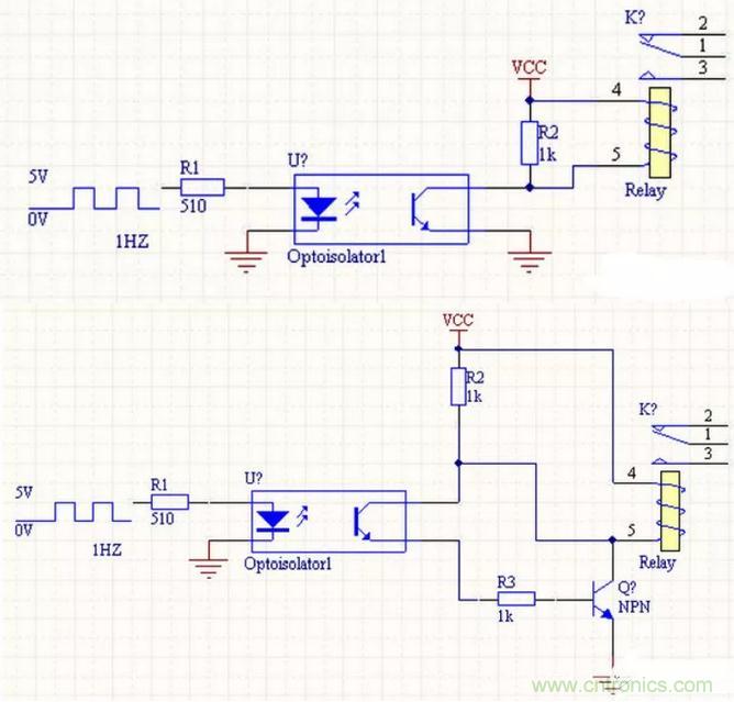 基極和發(fā)射極的電阻的作用是:在沒有正向偏置電壓的情況下,保證基極的電壓為零,防止三極管的受外部的干擾而誤導(dǎo)通,其實就是為了保證可靠性。 具體的阻值的大小倒不絕對,10K、100K都可以的,只是起到下拉的作用,電流非常很小的。 此繼電器驅(qū)動電路已經(jīng)驗證通過,開和關(guān)狀態(tài)良好,實際應(yīng)用中最好把5V、24V兩組直流電源的地分開,再配合光藕實現(xiàn)真正的隔離效果。
