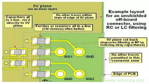 5、接口信號的濾波、防護(hù)、隔離器件等盡可能靠近接口連接器處,相應(yīng)的信號連接線必須盡可能短(符合工藝要求條件下的最短距離)。