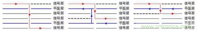 9、關(guān)鍵信號線(如時鐘線、總線、接口信號線、很射頻線、復(fù)位線、片選線)一般都是強(qiáng)輻射源或敏感信號線,盡可能靠近地平面布線,使其信號回路面積減少,減少其輻射強(qiáng)度或提高抗干擾能力。