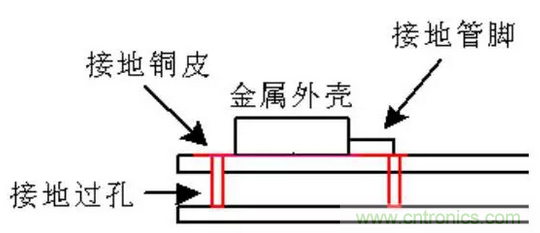 12、金屬外殼接地的器件如晶振,應(yīng)在其投影面的頂層上鋪接地鈾皮,目的是通過金屬外殼與接地銅皮之間的分布電容來抑制其對外輻射和提高抗干擾能力。