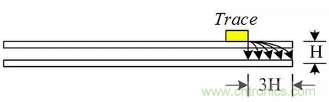 11、關(guān)鍵信號線距參考地平面邊沿≥3H(H為線距離參考平面的高度),特別是電源走線