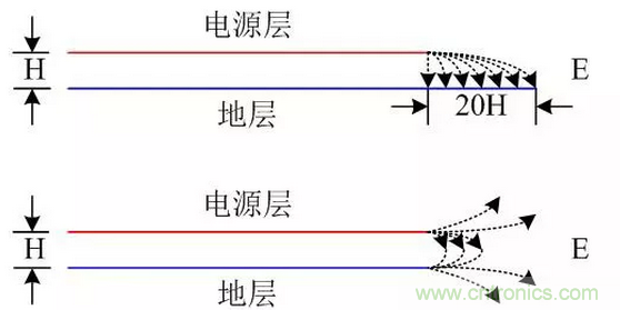 16、電源平面應(yīng)相對于其相鄰地平面內(nèi)縮20H,當(dāng)因結(jié)構(gòu)限制時,也應(yīng)保證5H