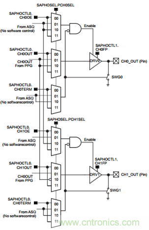 PHY是USS子系統(tǒng)與換能器連接的物理層,實(shí)現(xiàn)換能器的驅(qū)動(dòng)以及阻抗匹配,如下圖6。TI的USS模塊提供雙路換能驅(qū)動(dòng)以及信號(hào)接收。驅(qū)動(dòng)信號(hào)和接收信號(hào)通過模擬開關(guān)切換實(shí)現(xiàn)上、下行換能器的交換,實(shí)現(xiàn)一對(duì)換能器可以雙向信號(hào)傳輸。PHY的輸出驅(qū)動(dòng)阻抗可以低至4?、驅(qū)動(dòng)電流可以高達(dá)120mA,所以配合簡(jiǎn)單的阻容電路,USS模塊可以直接驅(qū)動(dòng)換能器,而不需要增加額外的模擬器件。
