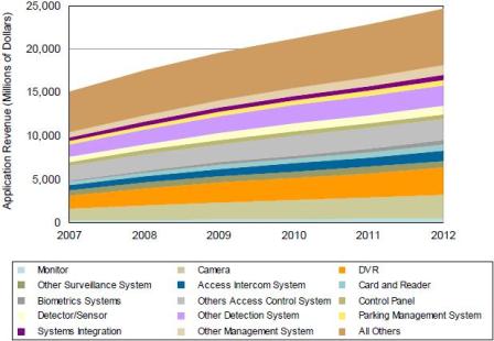 2007-2012年,住宅應(yīng)用的市場份額預(yù)計(jì)將從18.8%升至22.1%。同期政府在安防方面的支出將會(huì)下降。但是,用于監(jiān)控交通與零售店的視頻監(jiān)視增長較快,將推動(dòng)中國安防市場的增長。安防系統(tǒng)在制造業(yè)的滲透率較高,預(yù)計(jì)未來在該領(lǐng)域的增長將會(huì)放緩。