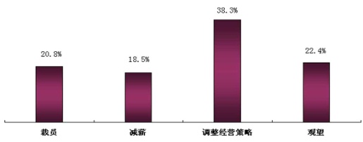 此項(xiàng)調(diào)查結(jié)果出乎我們的意料,選擇裁員的企業(yè)已經(jīng)占到了20.8%,但是多數(shù)企業(yè)還是選擇了調(diào)整經(jīng)營策略。我們特別希望有遠(yuǎn)見的企業(yè)不要把裁員作為應(yīng)對(duì)危機(jī)的主要措施,這也不符合我們“和諧社會(huì)”的主旋律。只要能正確的面對(duì),認(rèn)真分析企業(yè)的優(yōu)勢,研究市場的動(dòng)向,合理配置企業(yè)資源,充分發(fā)揮員工的潛力,調(diào)動(dòng)員工的積極性,企業(yè)一定會(huì)有新的轉(zhuǎn)機(jī)。企業(yè)如能和員工共克時(shí)艱,就會(huì)加深員工對(duì)企業(yè)的感情,這種情感會(huì)轉(zhuǎn)化為企業(yè)的一種優(yōu)勢資源。(見圖表四)