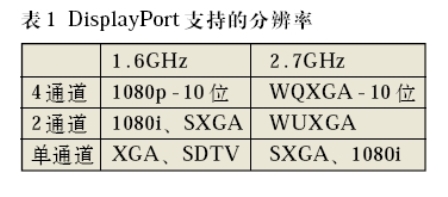 DisplayPort是一個高帶寬、雙向顯示互連,可以實現(xiàn)內(nèi)置和外置顯示連接的通用新一代接口標(biāo)準(zhǔn)。憑借可擴展SerDes技術(shù)及改變通道數(shù)和速度,顯示系統(tǒng)可采用DisplayPort接口標(biāo)準(zhǔn)來支持各種分辨率,使其成為數(shù)字電視的理想選擇。表1顯示了一些由不同速度和通道數(shù)支持的DisplayPort的分辨率實例。