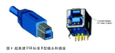 解決方案:在現(xiàn)有插頭和插座的插入面新增5 條導(dǎo)線。這樣就提供了與USB 2.0相同的機械接口,提供了完整的后向兼容性(見圖3~圖5)。現(xiàn)有的Micro-B 型插座(見圖5)無法提供空間用于新增5條導(dǎo)線,因此需要進(jìn)行較大的更改,用同時提供2.0和3.0接口的方案。這種連接器應(yīng)該只用于小型的便攜式設(shè)備。為了避免不正確的插入,超高速USB Micro-A和AB型連接器與Micro-B 型連接器在咬合栓和輪廓方面是不同的,但在其他方面則完全相同。與機械后向兼容性一樣,這樣做的目的是保留大量的設(shè)備驅(qū)動基礎(chǔ)設(shè)施。相同的數(shù)據(jù)傳輸類型、中斷、塊狀和等時存儲設(shè)備都保留了下來。最后,這個標(biāo)準(zhǔn)保留了現(xiàn)有USB的易用性。