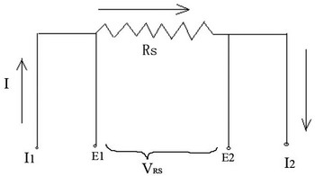 當(dāng)電流檢測電阻值已小到幾毫歐時,其引線的電阻造成的誤差則不能忽略,為此開發(fā)出四引線結(jié)構(gòu),如圖4所示。接近電阻根部的兩引線為測量VRS端,另兩根引線為電流的通路。在電阻根部測量RS上的電壓(消除了引線電阻的測量誤差)是精密測量方法,也稱為凱爾文(Kelvin)測量法。