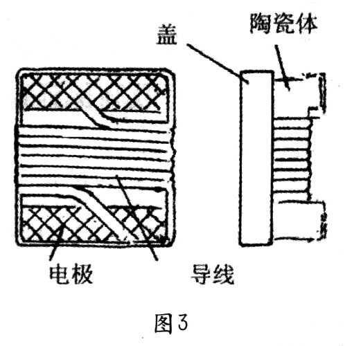 [page]還有一種片式繞線電感是采用H型陶瓷芯,經(jīng)過繞線、焊接、涂復、環(huán)氧樹脂灌封等工藝制成,見圖3,由于電極已預制在陶瓷芯體上,制造工藝更加簡單,而且可以進一步小型化。這類電感的電感量較小,但自諧振頻率高(通常為5~6GHz,最高達12.5GHz),更適合高頻使用。