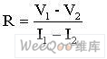 在切換低電壓同時(shí)又進(jìn)行低電阻測量時(shí),可以采用偏移補(bǔ)償?shù)姆绞降窒麩犭娖齐妷?,這需要利用兩個(gè)不同的電流值進(jìn)行兩次電壓測量。用兩次電壓測量結(jié)果的差除以兩次測試電流的差,即可計(jì)算機(jī)出電阻的值: