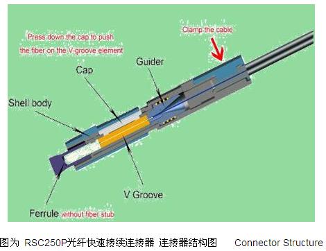 RSC250P光纖快速接續(xù)連接器采用非預(yù)置光纖技術(shù),精密金屬V型槽同軸自準(zhǔn)可靠固緊,宇特專利的箱砌式雙卡緊裝置,防縮尾彎設(shè)計(jì),一體化防摔抗壓結(jié)構(gòu)。成端性能優(yōu)異,完全達(dá)到FTTH光纖到戶使用要求。