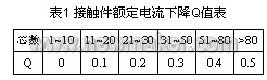 單個(gè)接觸件額定電流≥單個(gè)接觸件承載電流/(1-Q) (1)