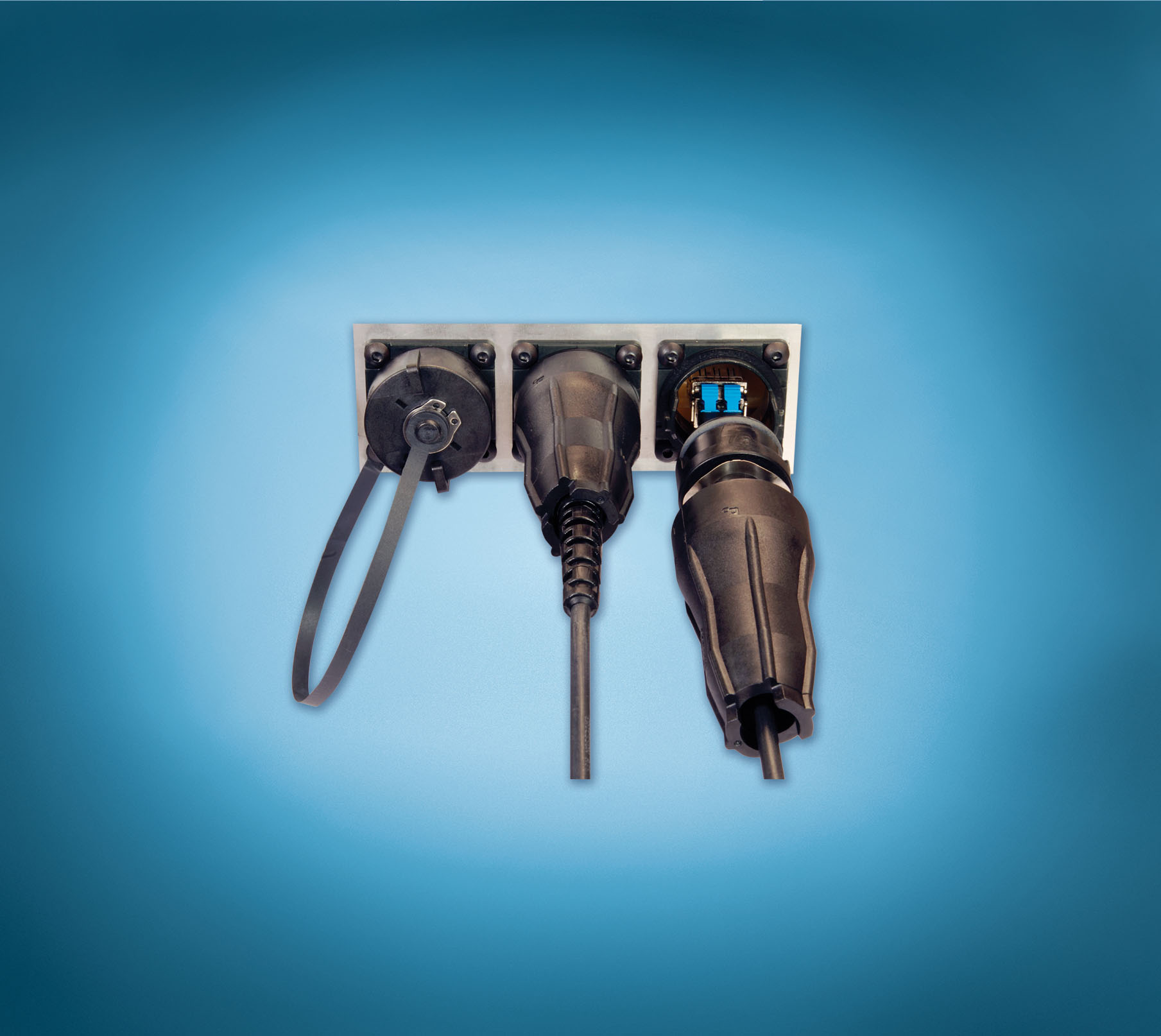 用于WiMax和LTE FTTA應(yīng)用的耐磨電纜組件通過堵頭直接插入光纖收發(fā)器以建立連接。這種連接要求連接器在Z軸方向具有較大的容量。TE的FullAXS連接器系統(tǒng)不僅在Z軸方向有較大容量,而且還實(shí)現(xiàn)了連接器外殼的單手安裝,因此完全符合要求。