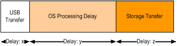 3.延遲Z是指數(shù)據(jù)在USB和存儲(chǔ)設(shè)備之間傳輸所需的時(shí)間,這取決于請(qǐng)求類(lèi)型。還取決于直接存儲(chǔ)器存取結(jié)構(gòu)和存儲(chǔ)設(shè)備類(lèi)型,并不取決于USB速度,因?yàn)檫@里瓶頸會(huì)是存儲(chǔ)速度而不是USB速度(如SuperSpeed)。延遲Z可能在幾毫秒和數(shù)微秒之間,取決于存儲(chǔ)設(shè)備類(lèi)型和數(shù)據(jù)大小。