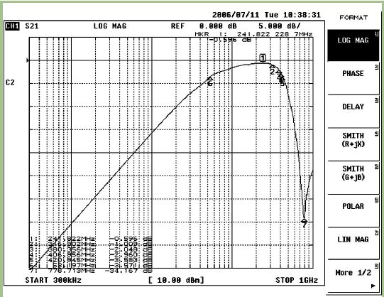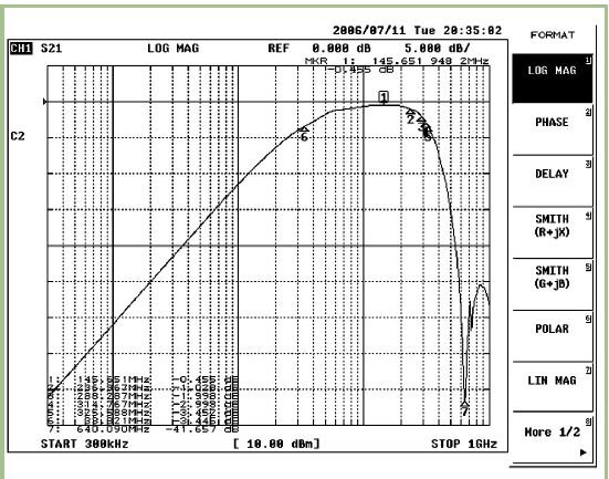 盡管三組結(jié)果是由不同的方法求出的,但它們彼此吻合良好。分析(MATLAB)和數(shù)值(ADS)模型獲得的響應(yīng)與實(shí)驗(yàn)獲得的響應(yīng)(VNA測量值)比較起來十分接近。利用分析和數(shù)值方法獲得的值近似相等,但與實(shí)驗(yàn)結(jié)果相比有少許差異。最好的解釋是,理論模型沒有把變壓器結(jié)構(gòu)中所采用的各元件的復(fù)雜特性完全考慮在內(nèi),而是按照幾乎“理想”的元件來建模的。