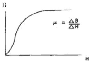 用于抗 EMI 的鐵氧體材料,磁導(dǎo)率(μ)和飽和磁感應(yīng)強(qiáng)度(Bs)是兩個(gè)最重要的磁性參數(shù),而磁導(dǎo)率(μ)的定義是磁通密度隨磁場(chǎng)強(qiáng)度的變化率,即 μ=△B/△H。