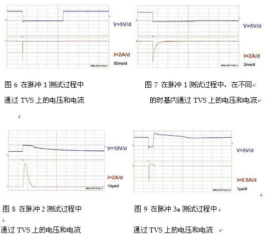以SMAJ24A為例,從產(chǎn)品數(shù)據(jù)表摘取這些參數(shù)與圖11的曲線進行比較,發(fā)現(xiàn)SMAJ24A符合ISO7637-2脈沖2測試的要求,可承受長達1.2ms的360 W指數(shù)脈沖,這個數(shù)值遠遠高于ISO7637-2脈沖2電涌強制的4μs時長。