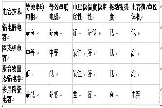 - 多層陶瓷電容、固態(tài)鉭電解電容和鋁電解電容的比較