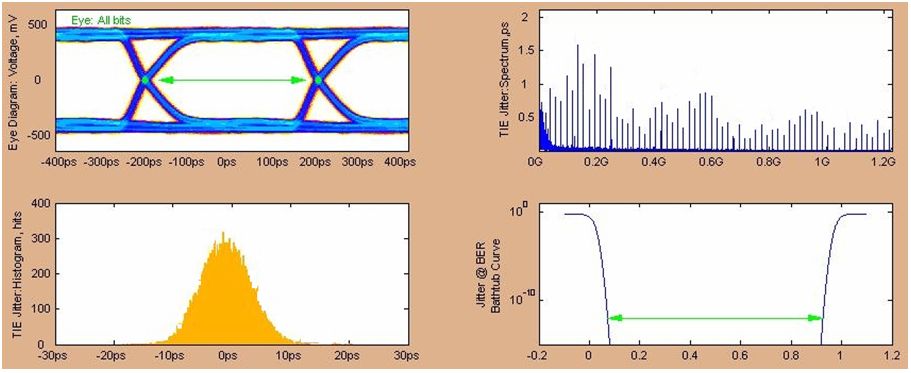 圖10 1228.8Mbps發(fā)送側眼圖(經(jīng)5inches FR4走線,調整了最優(yōu)的去加重補償)