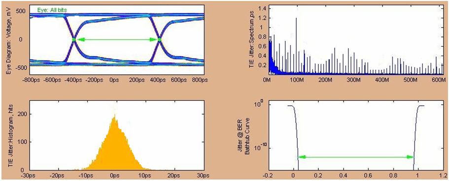 圖11 2457.6Mbps發(fā)送側眼圖(經(jīng)5inches FR4走線,調整了最優(yōu)去加重補償)