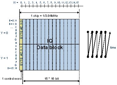 CPRI幀分成基本幀單元和超幀單元?;編瑔卧膸l是3.84MHz,包括16個字(表示為W=0…15,其中W0為控制字,后15個字為I/Q數(shù)據(jù)),根據(jù)不同的鏈路速率,字的長度分別為8bits、16bits(如圖7所示)、32bits。超幀單元是由256個基本幀單元組成,其中,第1個基本幀單元里的控制字寫入K28.5標志作為超幀的同步控制信息,其余的255個基本幀單元里的控制字包含控制和管理字(C&M)、廠商自定義控制字等,并預留一些控制字。