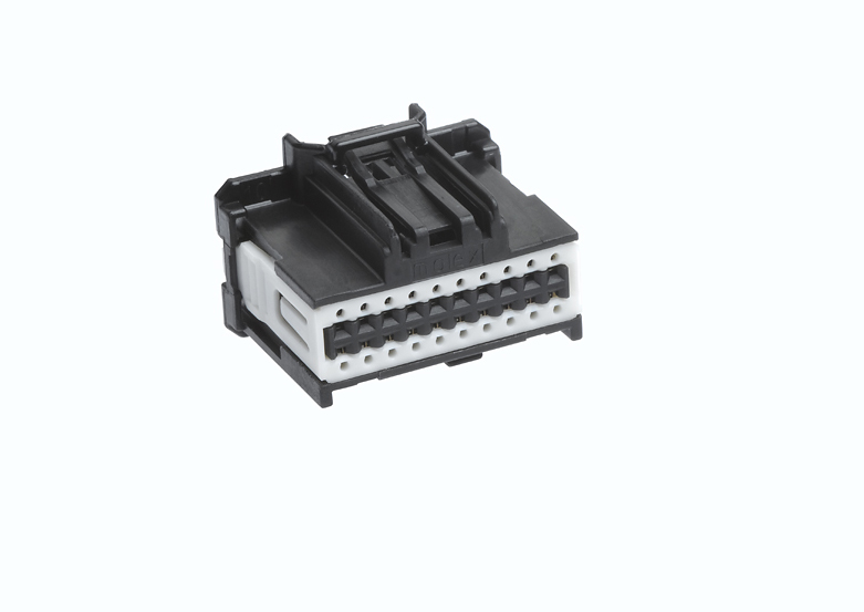 20路雙排線束Stac64-e連接器專為承受嚴酷環(huán)境而設計,而且成功完成了針對未密封連接器汽車應用的機械、環(huán)境和電氣性能特性的USCAR-2 Class II驗證測試。生物塑料樹脂Stac64-e連接器是Molex Stac64 PCB連接器產品組合的新成員,具有可堆疊的模塊化外殼,可以組合成更大的連接頭組件中而無需定制模具,從而顯著縮短了上市時間。Stac64連接器能夠滿足導航、儀器儀表和其它汽車應用的需求。