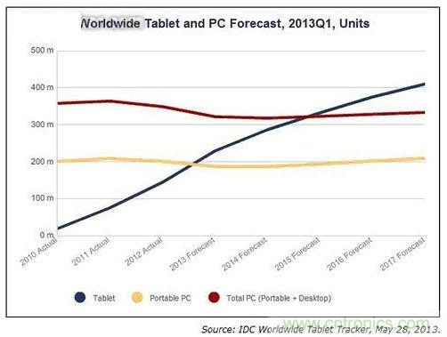 當(dāng)前消費(fèi)類電子產(chǎn)品的主要產(chǎn)品細(xì)分類型如下:配有3-5英寸屏幕的智能手機(jī);5-8英寸的超級手機(jī)或平板手機(jī);8-11.6英寸的平板電腦;11.6-15.6英寸的超極本;以及最大可達(dá)17英寸的筆記本電腦。在其5年的產(chǎn)品歷史中,平板電腦被認(rèn)為是升溫最快的移動設(shè)備,根據(jù)預(yù)測,到2015年其銷量有望趕超個人電腦。因此,PC供應(yīng)商開始將重心轉(zhuǎn)移至用戶界面友好的觸摸設(shè)計(jì)上,比如具有與筆記本電腦或平板電腦相同功能的可翻轉(zhuǎn)筆記本電腦。