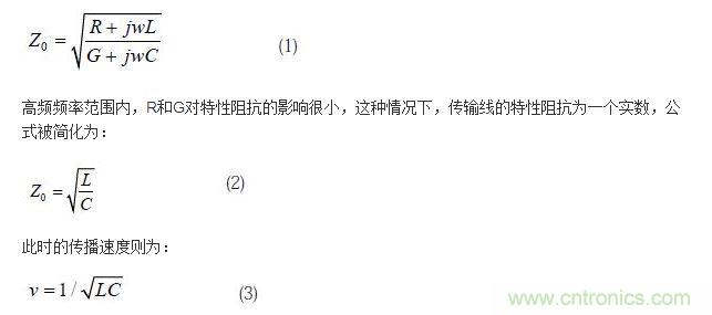 傳輸線內(nèi)的信號(hào)在傳輸過(guò)程中,將即時(shí)信號(hào)外加電壓與內(nèi)通電流的比值稱為信號(hào)的瞬態(tài)阻抗。當(dāng)傳輸線沿途的瞬態(tài)阻抗為恒定值時(shí),這個(gè)值就被稱為傳輸線的特性阻抗,表達(dá)式為: