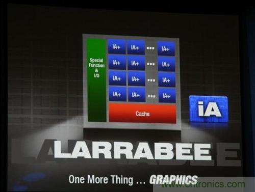 在2007年的IDF上,Intel正式揭開獨(dú)立顯卡——代號(hào)“Larrabee”的神秘面紗,Larrabee隸屬于其萬億次運(yùn)算項(xiàng)目(Tera-scale),也將是Intel的第一款實(shí)用級(jí)萬億次運(yùn)算處理器,其處理能力“大大超過”一萬億次浮點(diǎn)每秒;根據(jù)Intel首席架構(gòu)師EdDavis的演示文稿,Larrabee基于可編程架構(gòu),主要面向高端通用目的計(jì)算平臺(tái),至少有16個(gè)核心,主頻1.7-2.5GHz,功耗則在150W以上,支持JPEG紋理、物理加速、反鋸齒、增強(qiáng)AI、光線追蹤等特性。