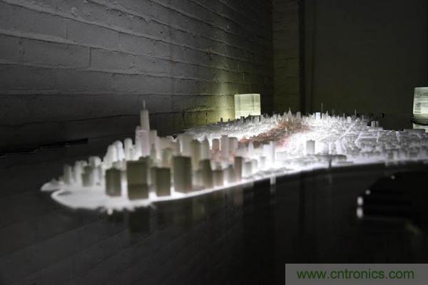 【導(dǎo)讀】在紐約長(zhǎng)大的藝術(shù)家Troy Huang使用3D打印和激光切割技術(shù)制作了一張讓人驚艷的桌子,這張桌子上布滿了曼哈頓的每一棟建筑模型。這就是曼哈頓城區(qū)的微縮模型,盡管是微縮的,但是其中的每棟建筑、每條街道都清清楚楚,十分精細(xì),再用LED燈點(diǎn)亮,一座燦爛輝煌的世界之都呈現(xiàn)在我們眼前。