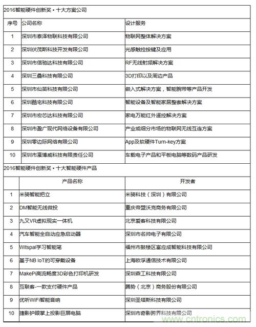 該活動旨在發(fā)現(xiàn)中國智能硬件行業(yè)的創(chuàng)造力和支撐力,樹立行業(yè)的標桿,經(jīng)過專家評審和網(wǎng)友在線投票,以及專業(yè)行業(yè)協(xié)會的推薦,共評選出智能硬件行業(yè)中十大方案公司、十大智能硬件產(chǎn)品。CITE組委會主任、中國電子器材總公司常務副總經(jīng)理、中電會展與信息傳播有限公司董事長陳雯海出席了2016智能硬件創(chuàng)新獎的頒獎典禮并與為獲獎團隊頒獎