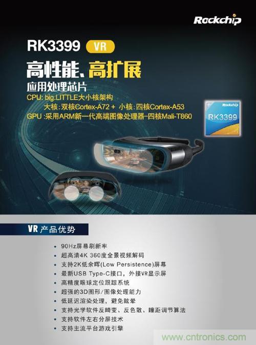 據(jù)了解,目前瑞芯微Rockchip旗下主流芯片RK3288,應用于VR產(chǎn)品,已經(jīng)具備其曝光的所有技術(shù)優(yōu)勢。已在VR產(chǎn)業(yè)鏈頗具建樹,在2016年的CES展及本次香港展,多家品牌終端廠商采用了該入門級VR方案并進行了展示。而最新發(fā)布的RK3399處理器,更定于中高端VR產(chǎn)品線,在硬件配置上提升巨大。