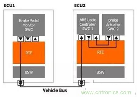 每個ECU都有為它量身定制的運行環(huán)境(RTE),通??赏ㄟ^配套的設計工具來自動創(chuàng)建。真正的電子控制單元之間的實際通信將實現(xiàn)成CAN或Flex Ray總線的一部分,而運行環(huán)境通過產(chǎn)生工具進行配置,以便執(zhí)行相連AUTOSAR組件所需的通信路徑。運行環(huán)境可以切實執(zhí)行虛擬功能總線和架構設計流程的通信和連接拓撲。由于AUTOSAR標準支持很多不同類型的軟件組件,運行環(huán)境必須考慮各種軟件組件存在的限制和變化。