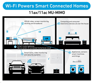 802.11ax將大幅提高網(wǎng)絡(luò)容量,支持多達8個同步數(shù)據(jù)流,每個數(shù)據(jù)流速率最高為1.2 Gbps,從而能以更高速度連接更多設(shè)備。Qorvo豐富的802.11ax 產(chǎn)品組合包括2.4GHz和5GHz前端模塊(FEM)及BAW濾波器。該產(chǎn)品組合中的高能效FEM減少了與支持Wi-Fi設(shè)備中多路輸入多路輸出(MIMO)相關(guān)的散熱問題,使制造商得以壓縮產(chǎn)品尺寸和成本。Qorvo BAW帶緣和共存濾波器可改善Wi-Fi服務(wù)質(zhì)量,防止相鄰LTE頻率干擾。