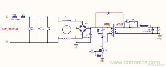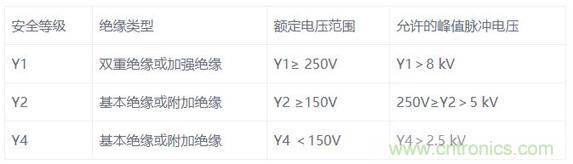 我們都知道Y電容是安規(guī)電容,是跨接L線地以及N線與地之間的電容,它的作用是抑制共模干擾?,F(xiàn)在一共有三種等級,分別是是Y1, Y2, Y4。由于漏電流不能太大這是安規(guī)要求,漏電流太大人體觸摸用電器會有一種麻麻的感覺,因此一般Y電容容量大小為1nF到4.7nF之間。