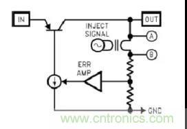可以通過網(wǎng)絡(luò)分析儀來測量回路增益,它通過向網(wǎng)絡(luò)回路注入低電平的正弦波,然后從直流信號(hào)掃描到使增益下降到0dB的頻率來測量增益的響應(yīng)。