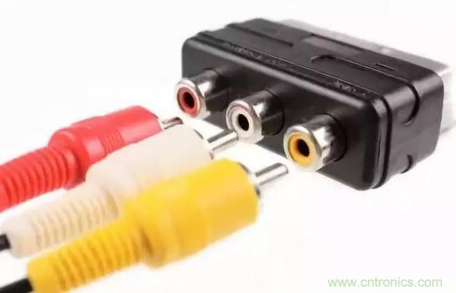 復(fù)合視頻接口是最基本的視頻連接器接口,過去主要用于家用視頻設(shè)備。這種接口常見于老款電視機、VCR和家用游戲機,線和端子都是黃色。因為對YUV三種源信號(Y:亮度,U/V:顏色)進行同步復(fù)合(composite),所以稱為復(fù)合視頻。在同一個信道(line)傳輸亮度和顏色信號,所以畫質(zhì)遠不如后來出現(xiàn)的其他接口標準。復(fù)合視頻接口輸出的視頻分辨率最高可達SD(—standard definition)級,也就是480i(NTSC)或576i(PAL)。模擬視頻連接器通常不包含音頻信號,因此如上圖所示,需要單獨的音頻線。一般用白色(左)和紅色(右)兩個連接器傳輸立體聲信號。