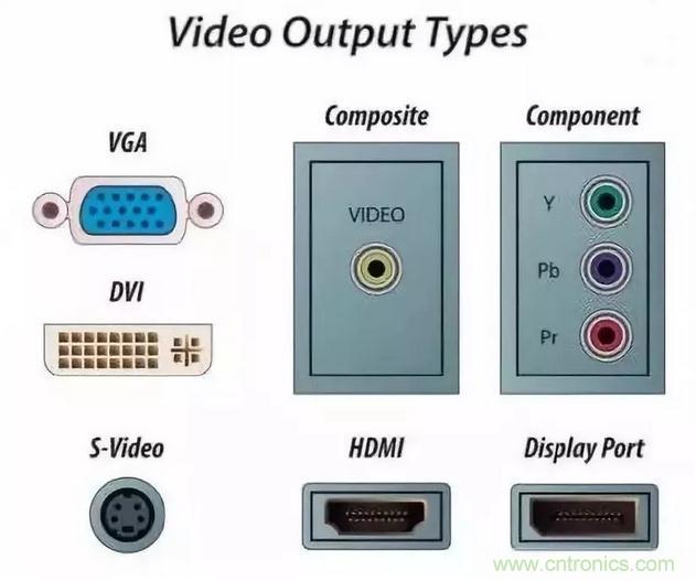 如上圖所示,電視機背面有幾個視頻連接器端子。今天我們來了解一下顯示連接器的種類及其特點。